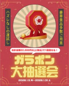 合計金額が税込22,000円以上で抽選にご参加いただけます。